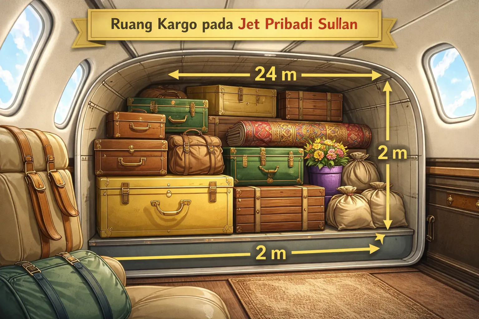 Ruang kargo pada jet pribadi Sultan memiliki kapasitas $24$ m³. Jika lebar kargo adalah $2$ m dan tingginya $2$ m, berapakah panjang ruang kargo tersebut?